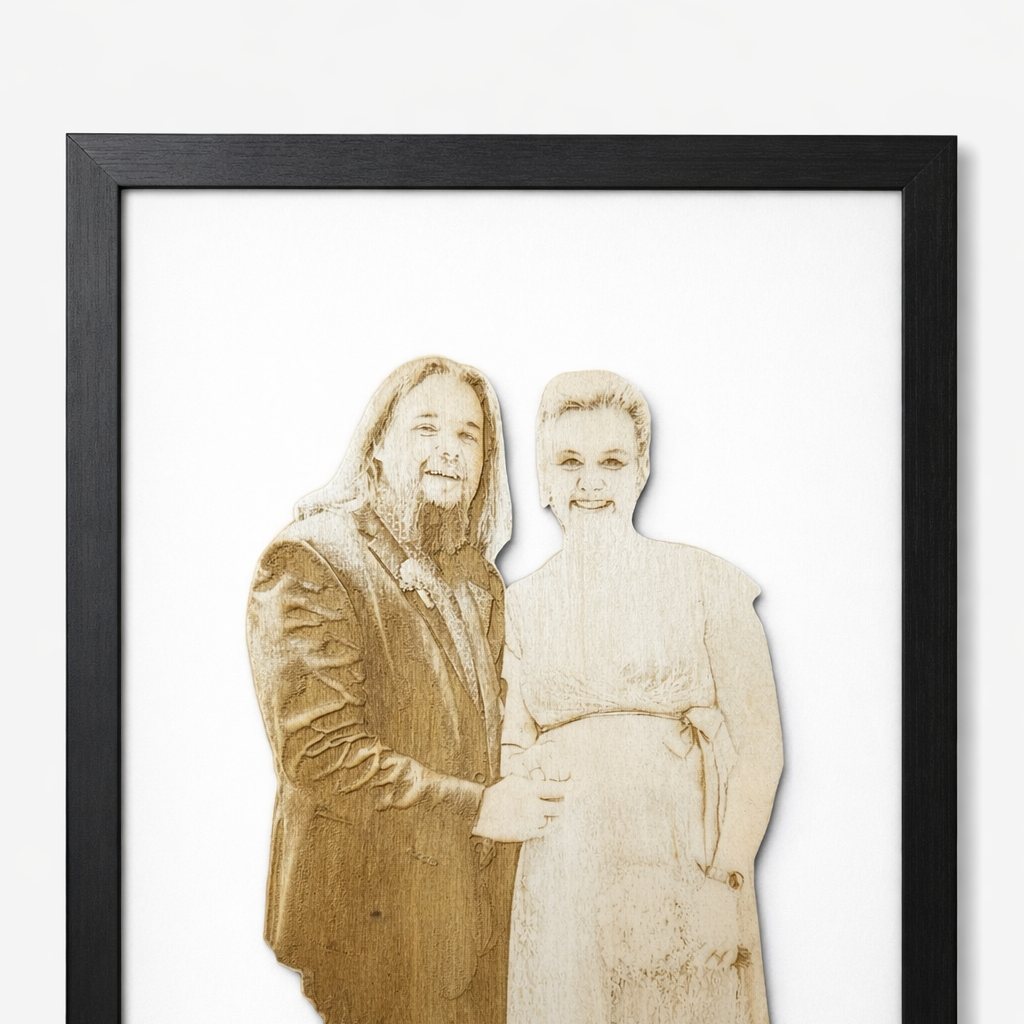Halte euren schönsten Tag für immer fest – mit einer edlen Lasergravur eures Hochzeitsfotos auf hochwertigem Holz. Die natürliche Maserung des Holzes verleiht jedem Motiv eine warme, zeitlose Ausstrahlung und macht aus eurem Foto ein einzigartiges Kunstwerk.